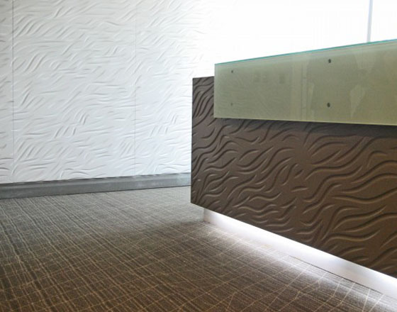 Revestimiento texturado en paneles de MDF. Panel producido con fibras de madera de pino radiata. Diseño con continuidad entre panel y panel. Para uso comercial y residencial en interiores. Revestimiento de muros y cielos. Muebles. Terminaciones posibles: Con aparejo (listo para pintar). Pintado o Lacado.